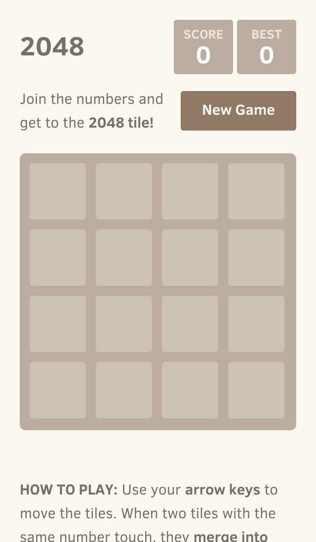 これは、GabrieleCirulli様によって作成されたゲームを練習する為の改造版です。本家様はこちらから